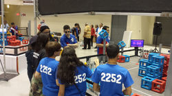 Team 2252A is composed of Bryan Rodríguez (mechanic), Brida Zayas (mechanic), Antonio Casellas (programmer), Alana González (programmer), Viviana Rivera (coach) and Eddie Rivera (driver). This rookie team is currently competing in the Middle School Advance division. Their robot has a U-Base with four omni wheels, a specie of six-bar lift and a bottom roller with a type of hooks. This robot has the ability of intaking two cubes at a time. As future plans they want to create a mechanism to mount the Skyrise sections.